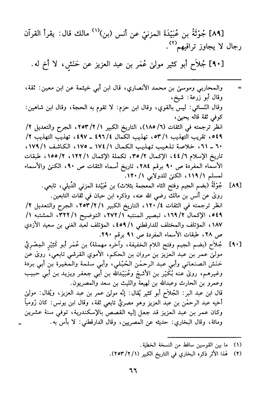 90- جلاح أبو كثير مولى عمر بن عبد العزيز عن حنشٍ، لا أخ له.