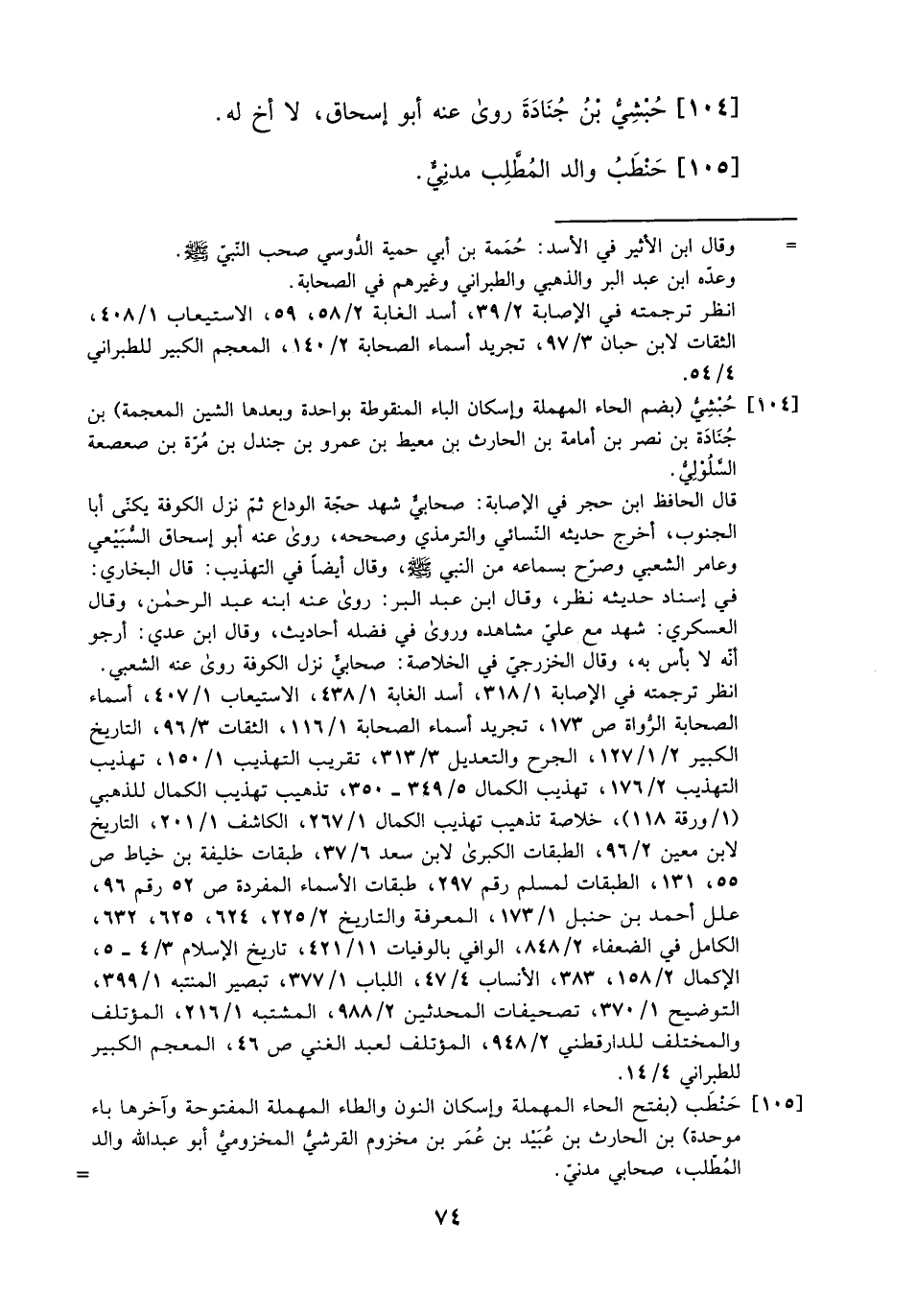 104- حبشي بن جنادة روى عنه أبو إسحاق، لا أخ له.