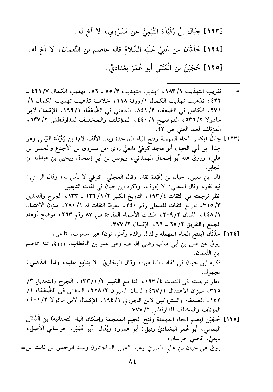 123- حبال بن رفيدة التيمي عن مسروقٍ، لا أخ له.