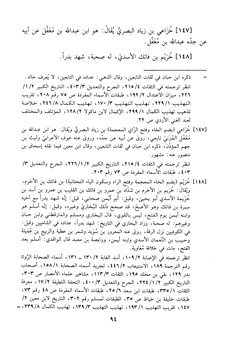 148- خريم بن فاتك الأسدي، له صحبة، شهد بدراً.