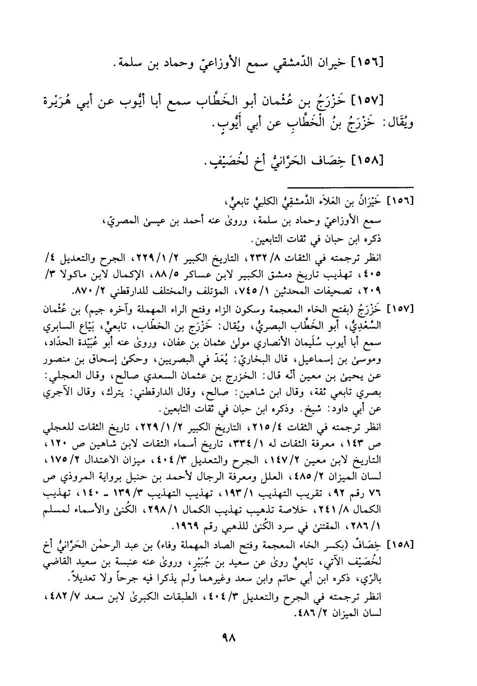 156- خيران الدمشقي سمع الأوزاعي وحماد بن سلمة.