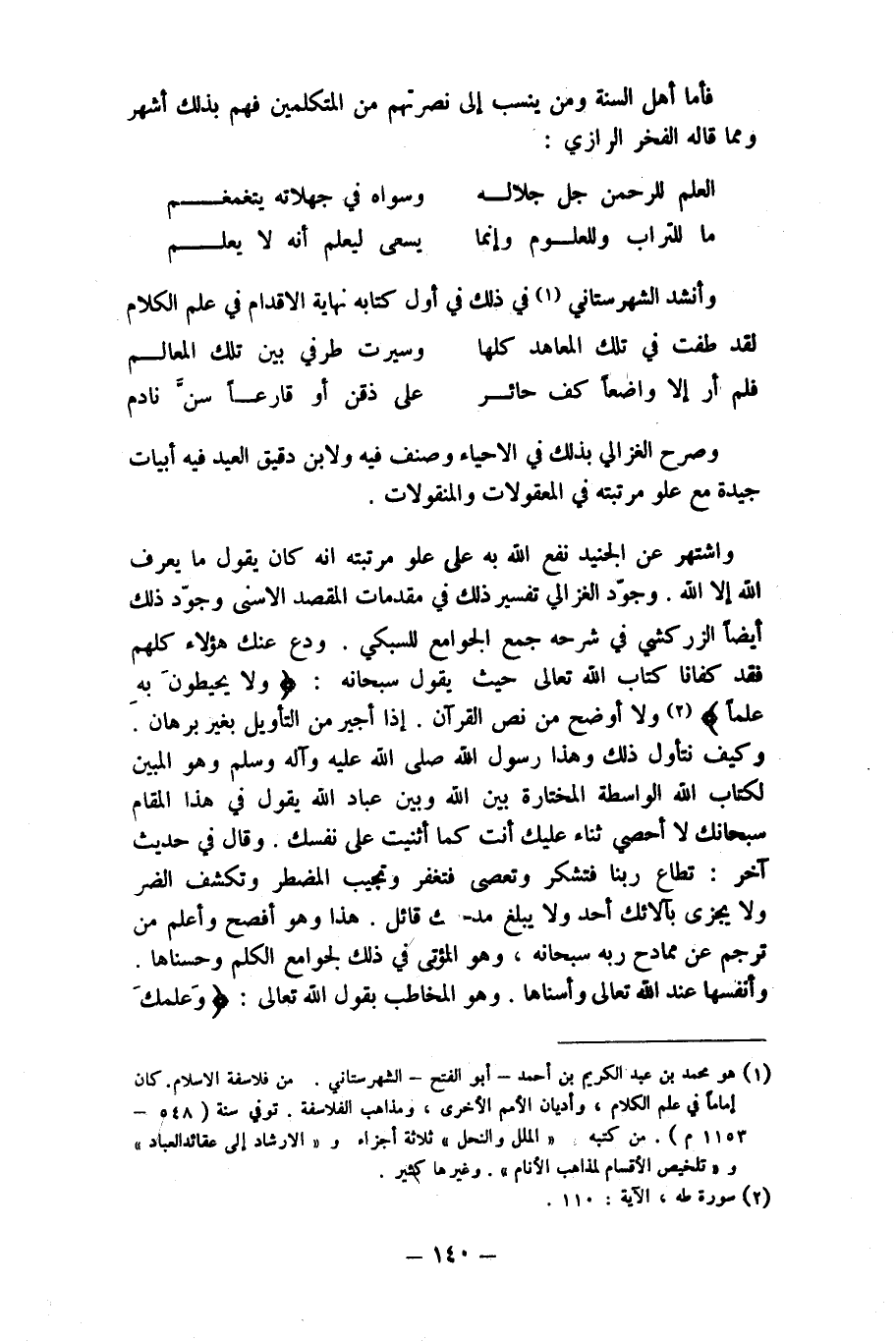 وَأنْشد الشهرستاني فِي ذَلِك فِي أول كِتَابه نِهَايَة الاقدام فِي علم الْكَلَام