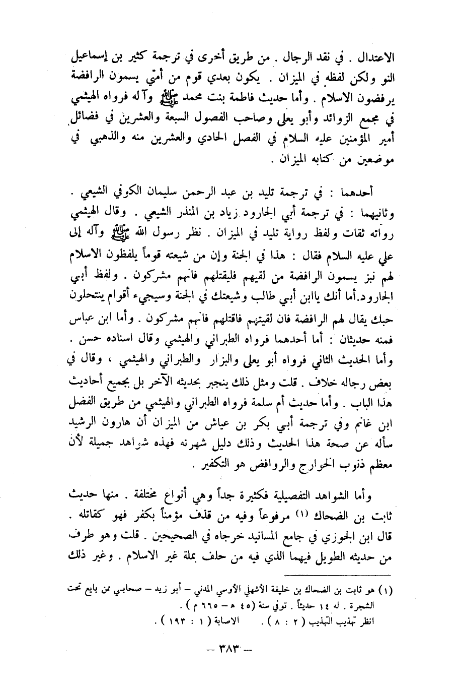 رِوَايَتهَا وَقد ذكرت مِنْهَا كثيرا فِي آخر العواصم فِي أَحَادِيث الرَّجَاء وَلَوْلَا خوف الاطالة لذكرتها هُنَا وَكَذَلِكَ مَا جَاءَ فِي من آمن بِاللَّه وَرُسُله كَقَوْلِه تَعَالَى فِي الْجنَّة {أعدت للَّذين آمنُوا بِاللَّه وَرُسُله ذَلِك فضل الله يؤتيه من يَشَاء وَالله ذُو الْفضل الْعَظِيم} ونظائرها مِمَّا ذكرته فِي العواصم وَمثل قَوْله تَعَالَى {فَمن يكفر بالطاغوت ويؤمن بِاللَّه فقد استمسك بالعروة الوثقى لَا انفصام لَهَا} وَمثل أَحَادِيث الشَّفَاعَة وَقد تقدّمت الاشارة إِلَى تَوَاتر معنى ذَلِك فِي مَسْأَلَة الْوَعْد والوعيد فِي هَذَا الْمُخْتَصر وبسطتها فِي العواصم فقاربت خَمْسمِائَة حَدِيث مَعَ مَا فِي الْقُرْآن الْعَظِيم مِمَّا يُغني عَنْهَا لَو لم ترد