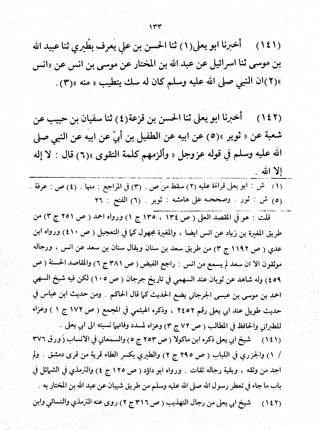 141 - حَدَّثَنَا الْحَسَنُ بْنُ عَلِيٍّ يُعْرَفُ الطِّيرِيَّ حَدَّثَنَا عُبَيْدُ اللَّهِ بْنُ مُوسَى، حَدَّثَنَا إِسْرَائِيلُ، عَنْ عَبْدِ اللَّهِ بْنِ الْمُخْتَارِ، عَنْ مُوسَى بْنِ أَنَسٍ، عَنْ أَنَسٍ، أَنَّ النَّبِيَّ صَلَّى اللهُ عَلَيْهِ وَسَلَّمَ «§كَانَ لَهُ سُكٌّ يَتَطَيَّبُ مِنْهُ»