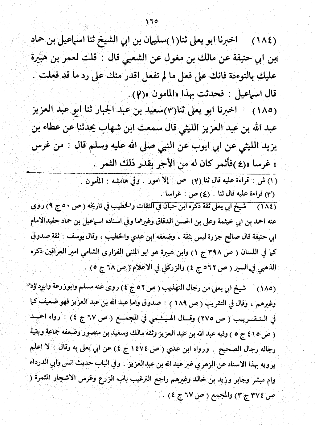 184 - حَدَّثَنَا سُلَيْمَانُ بْنُ أَبِي شَيْخٍ، حَدَّثَنَا إِسْمَاعِيلُ بْنُ حَمَّادِ بْنِ أَبِي حَنِيفَةَ، عَنْ مَالِكِ بْنِ مِغْوَلٍ، عَنِ الشَّعْبِيِّ، قَالَ: قُلْتُ لِعُمَرَ بْنِ هُبَيْرَةَ: «§عَلَيْكَ بِالتَّؤُدَةِ، فَإِنَّكَ عَلَى فِعْلِ مَا لَمْ تَفْعَلْ، أَقْدَرُ مِنْكَ عَلَى رَدِّ مَا قَدْ فَعَلْتَ» قَالَ إِسْمَاعِيلُ: «فَحَدَّثْتُ بِهَذَا الْمَأْمُونَ»
