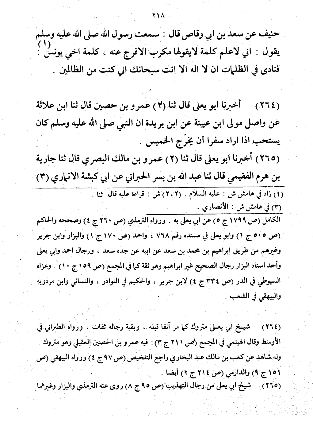 264 - حَدَّثَنَا عَمْرُو بْنُ حُصَيْنٍ، قَالَ: حَدَّثَنَا ابْنُ عُلَاثَةَ، عَنْ وَاصِلٍ مَوْلَى ابْنِ عُيَيْنَةَ، عَنِ ابْنِ بُرَيْدَةَ، عَنْ أَبِيهِ، أَنَّ النَّبِيَّ صَلَّى اللهُ عَلَيْهِ وَسَلَّمَ «كَانَ يَسْتَحِبُّ §إِذَا أَرَادَ سَفَرًا أَنْ يَخْرُجَ يَوْمَ الْخَمِيسِ»
