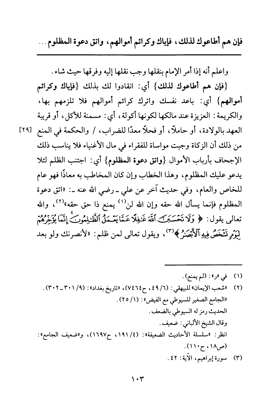 فإن هم أطاعوك لذلك، فإياك وكرائم أموالهم، واتق دعوة المظلوم.....