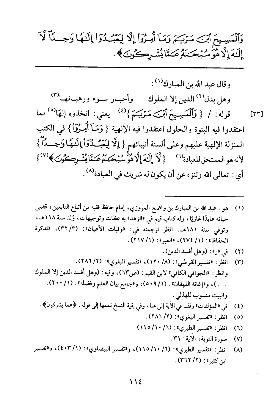 وَالْمَسِيحَ ابْنَ مَرْيَمَ وَمَا أُمِرُوا إِلاَّ لِيَعْبُدُوا إِلَهاً وَاحِداً لا إِلَهَ إِلاَّ هُوَ سُبْحَانَهُ عَمَّا يُشْرِكُونَ (31) } 1.