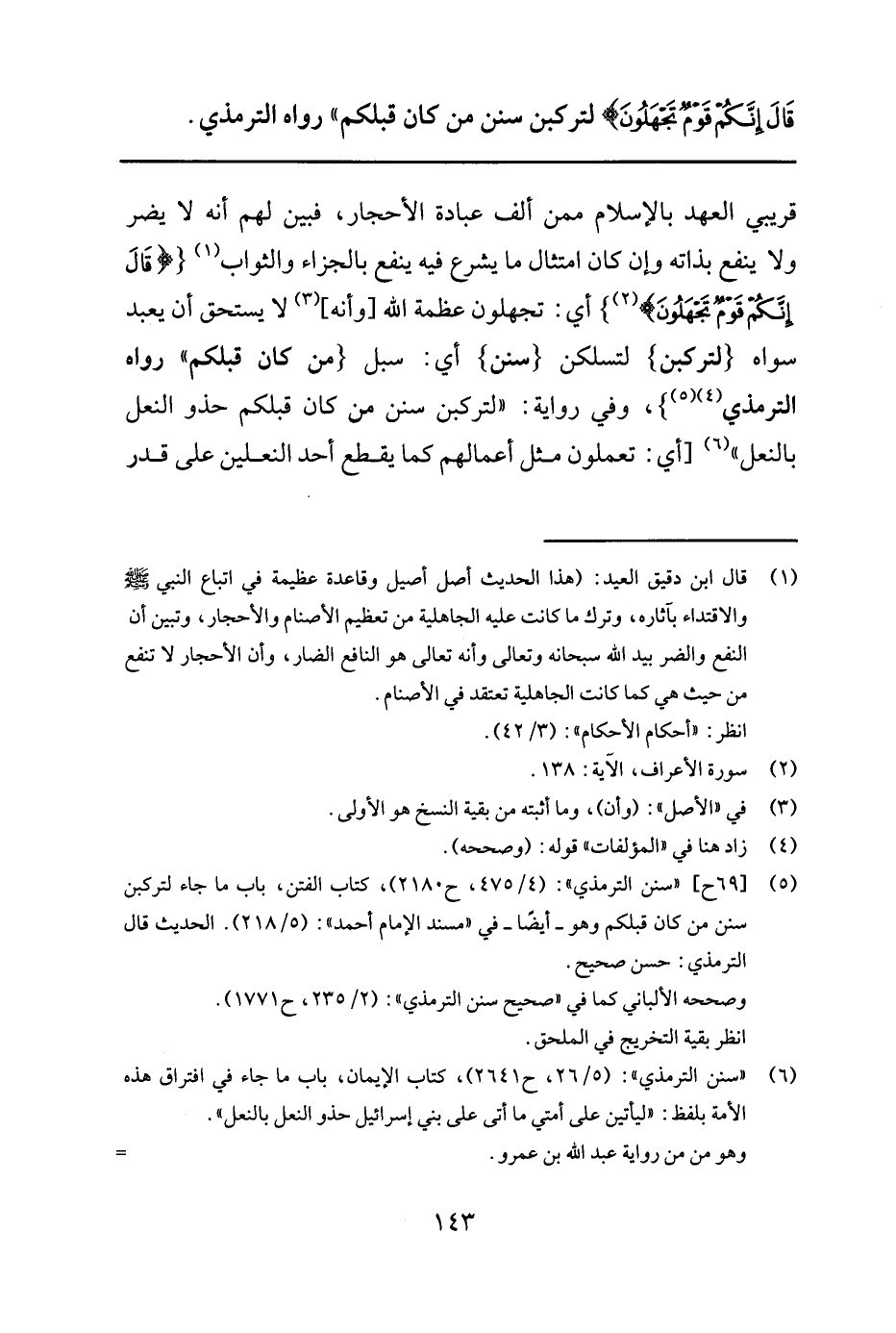 {إِنَّكُمْ قَوْمٌ تَجْهَلُونَ} 1 لتركبن سنن من كان قبلكم (رواه الترمذي.