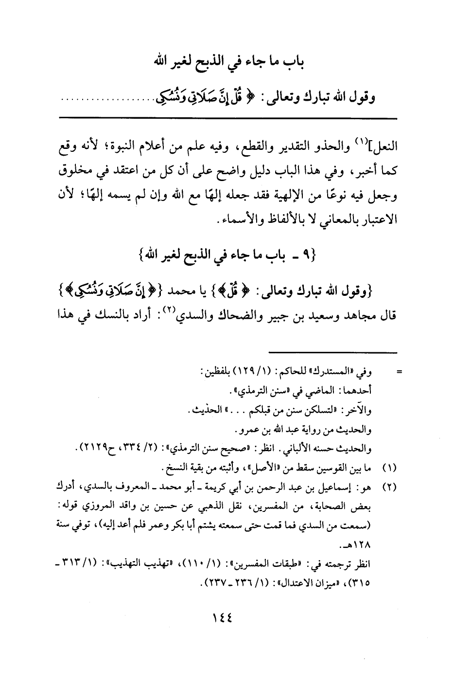 وقول الله تبارك وتعالى: {قُلْ إِنَّ صَلاتِي وَنُسُكِي} ..............