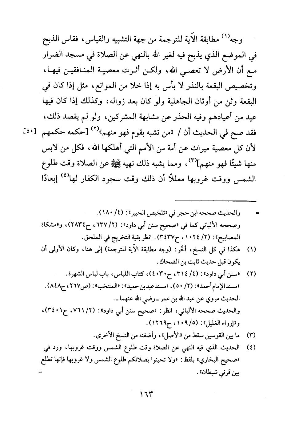 ومما يشبه ذلك نهيه صلى الله عليه وسلم عن الصلاة وقت طلوع الشمس ووقت غروبها معللا أن ذلك وقت سجود الكفار لها4 إبعادًا