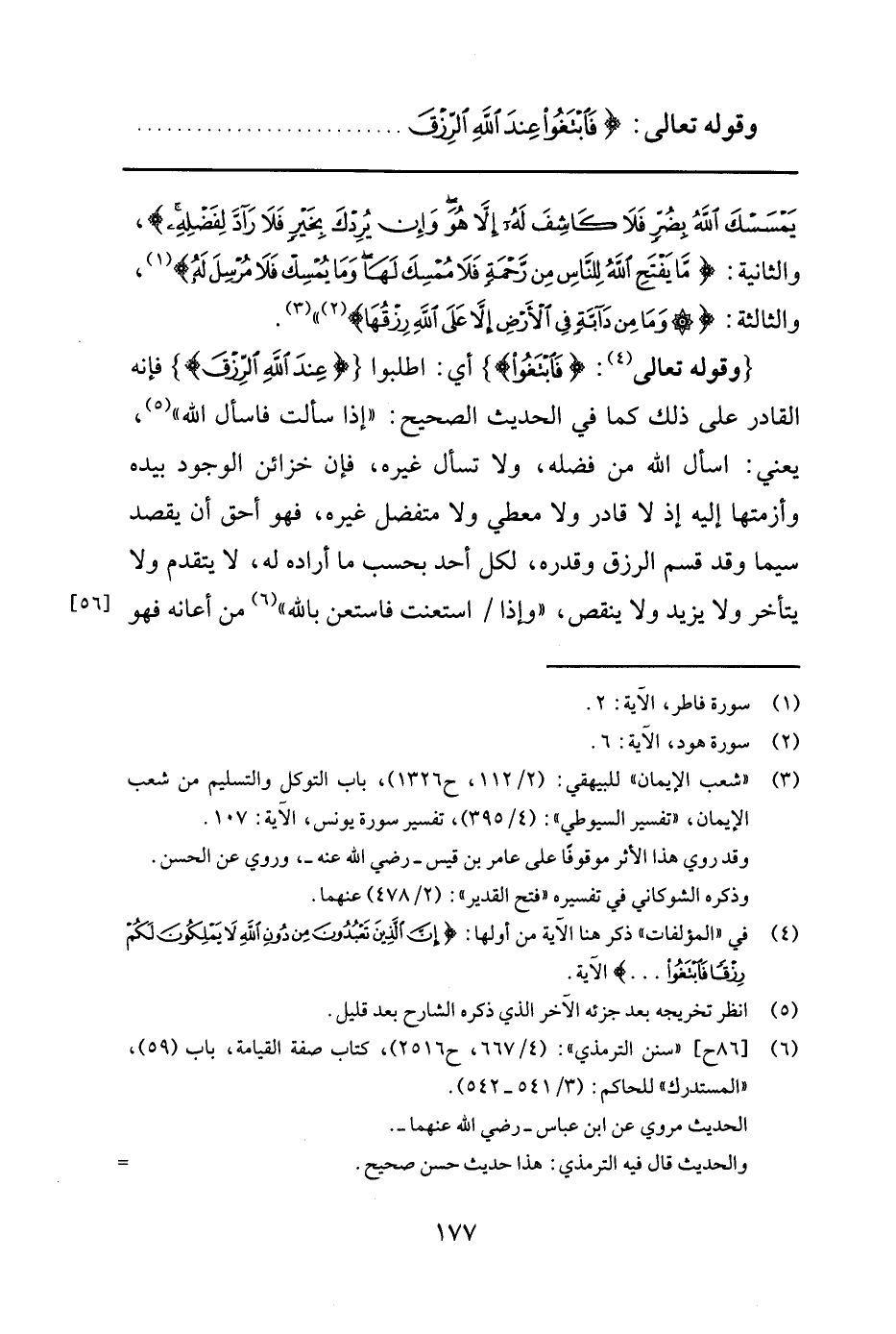 (4) في ((المؤلفات)) ذكر هنا ال، الآية من أولها: {إِنَّ الَّذِينَ تَعْبُدُونَ مِنْ دُونِ اللَّهِ لا يَمْلِكُونَ لَكُمْ رِزْقاً فَابْتَغُوا} الآية.