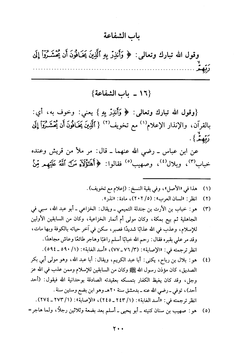 وقول الله تبارك وتعالى: {وَأَنْذِرْ بِهِ الَّذِينَ يَخَافُونَ أَنْ يُحْشَرُوا إِلَى رَبِّهِمْ}