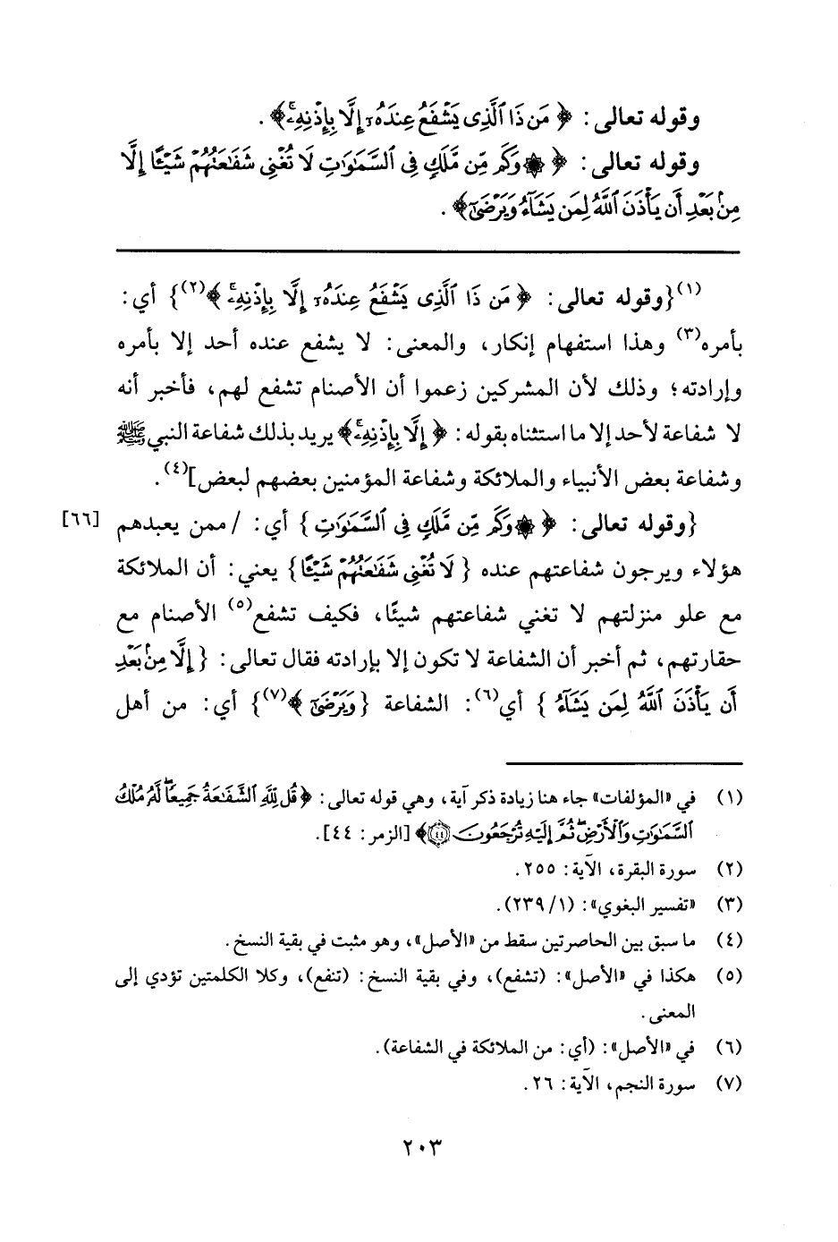(3) في ((المؤلفات)) جاء هنا زيادة ذكر، الآية, وهي قوله تعالى: {قُلْ لِلَّهِ الشَّفَاعَةُ جَمِيعاً لَهُ مُلْكُ السَّمَاوَاتِ وَالأَرْضِ ثُمَّ إِلَيْهِ تُرْجَعُونَ} (الزمر:44)