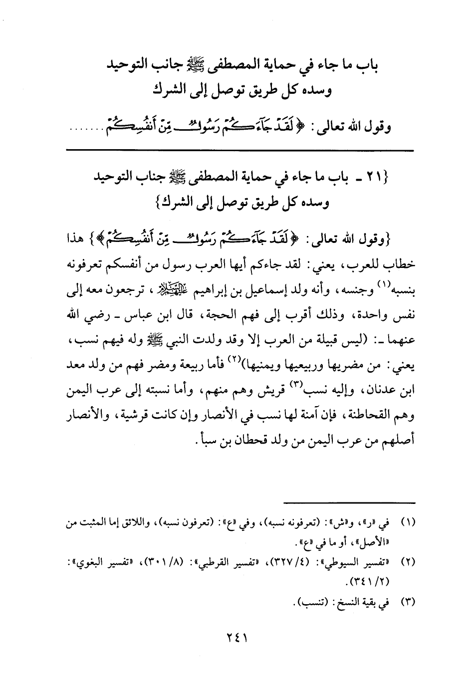 باب ما جاء في حماية المصطفى صلى الله عليه وسلم جناب التوحيدوسده كل طريق توصل إلى الشرك