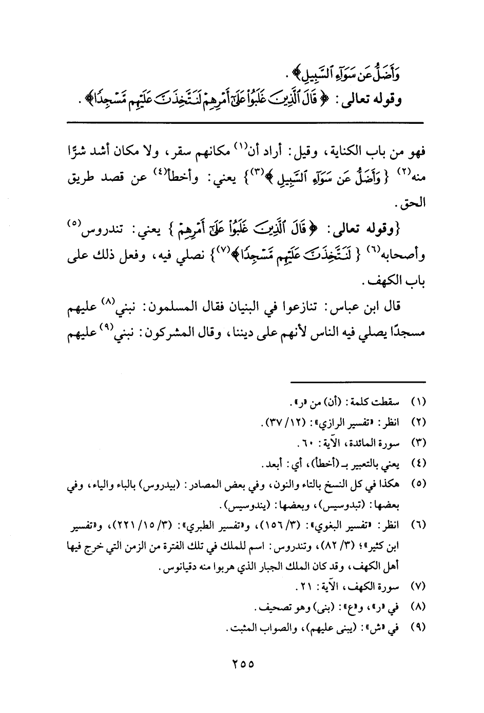 قال ابن عباس: تنازعوا في البنيان فقال المسلمون: نبني8 عليهم مسجدا يصلي فيه الناس لأنهم على ديننا، وقال المشركون: نبني عليهم9