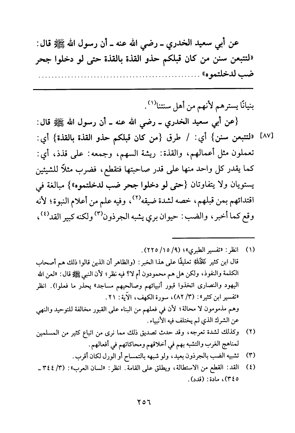 2 وكذلك لشدة تعرجه, وقد حدث تصديق ذلك مما نرى من اتباع كثير من المسلمين لمناهح الغرب والتشبه بهم في أخلاقهم ومحاكاتهم في أفعالهم.