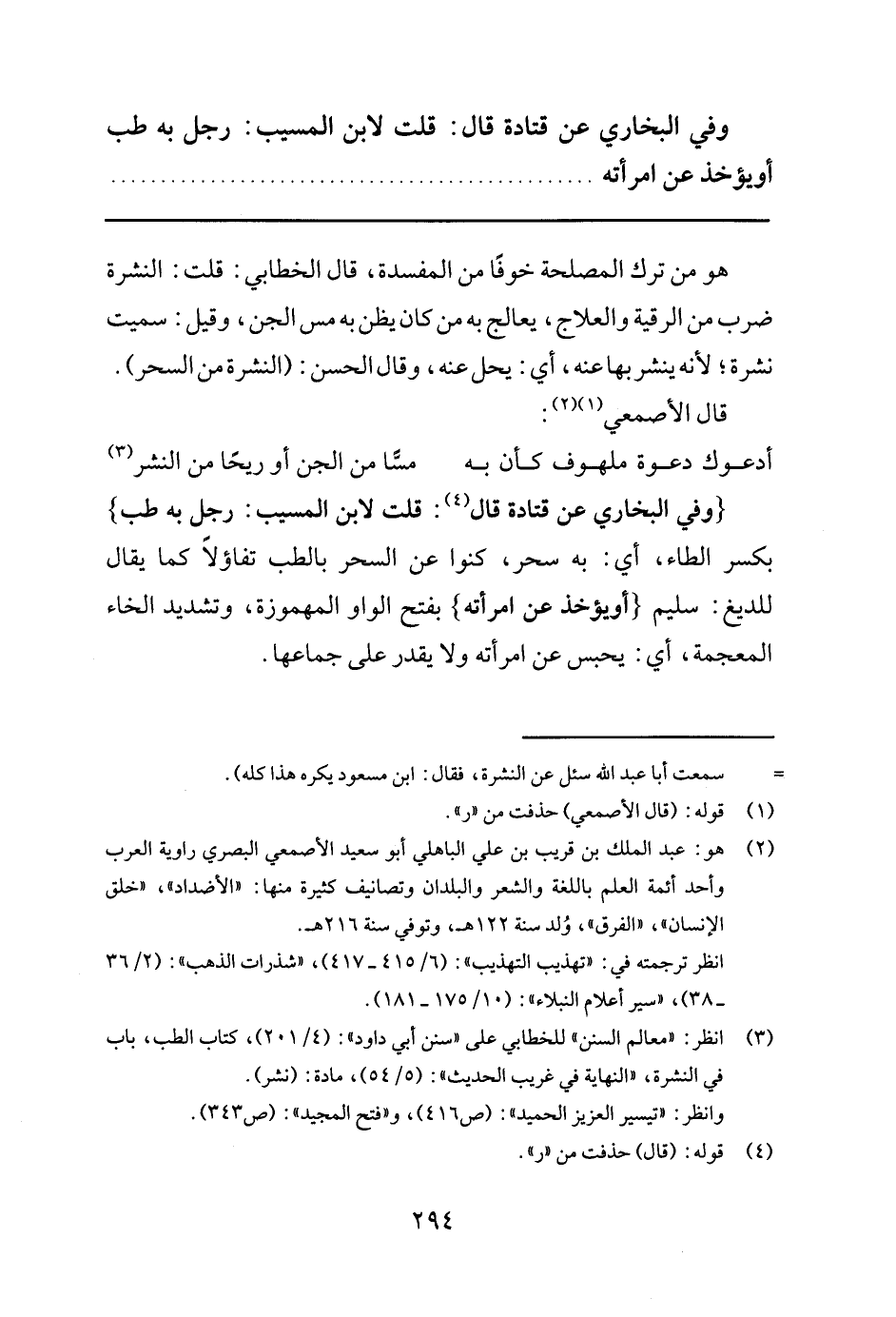 3 انظر:"معالم السنن"للخطابي على"سنن أبي داود": (4/ 201) , كتاب الطب, باب في النشرة,"النه، الآية في غريب الحديث": (5/ 54) , مادة: (نشر) . وانظر:"تيسير العزيز الحميد": (ص 416) , و"فتح المجيد": (ص 343) .