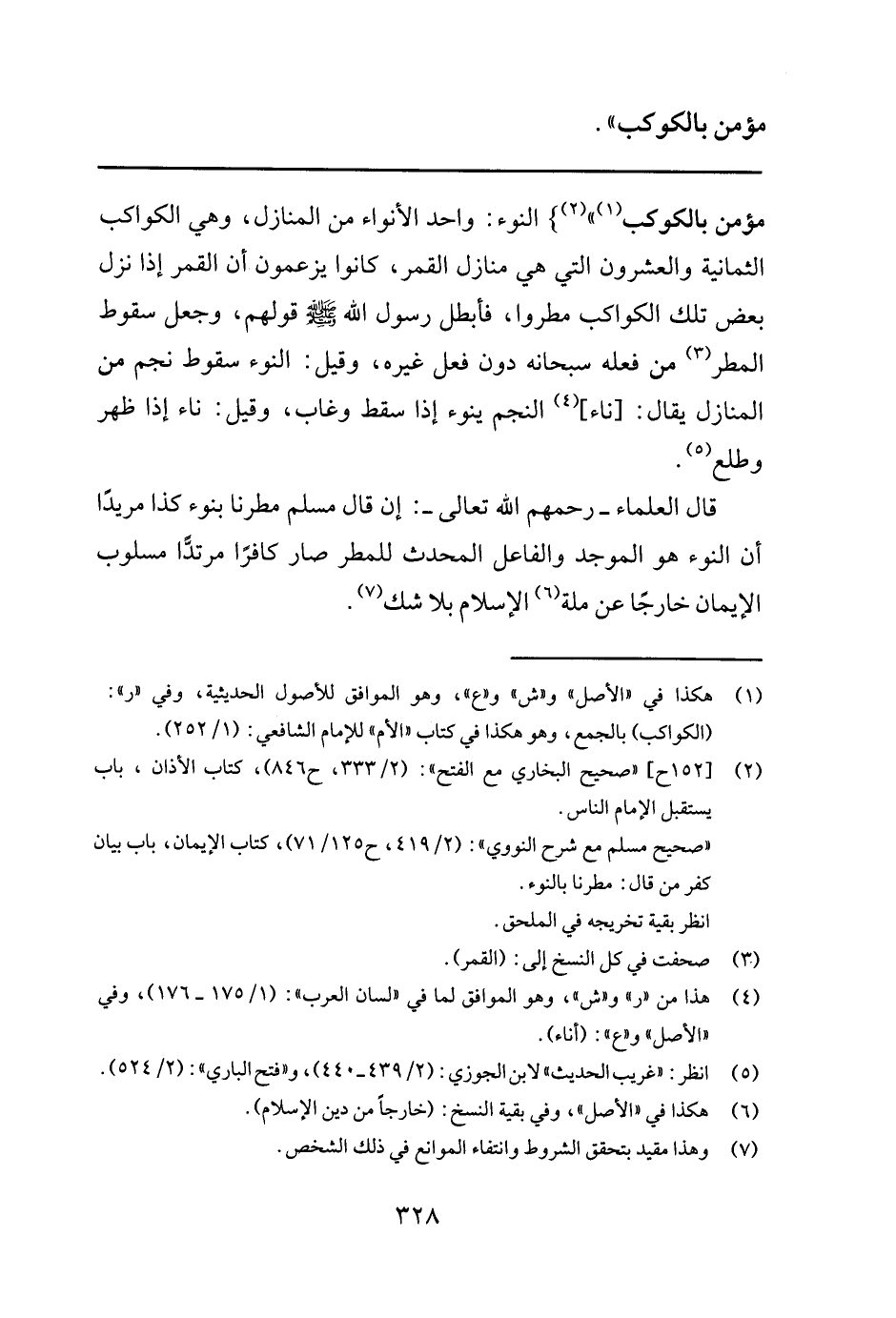 1 هكذا في"الأصل"و"ش"و"ع", وهو الموافق للأصول الحديثية, وفي"ر": (الكواكب) بالجمع, وهو هكذا في كتاب"الأم"للإمام الشافعي: (1 / 252) .