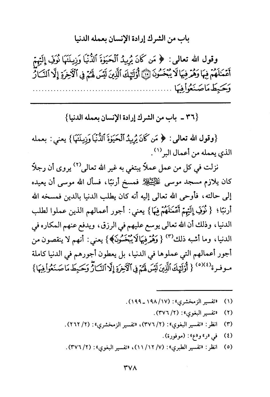باب من الشرك إرادة الإنسان بعمله الدنيا