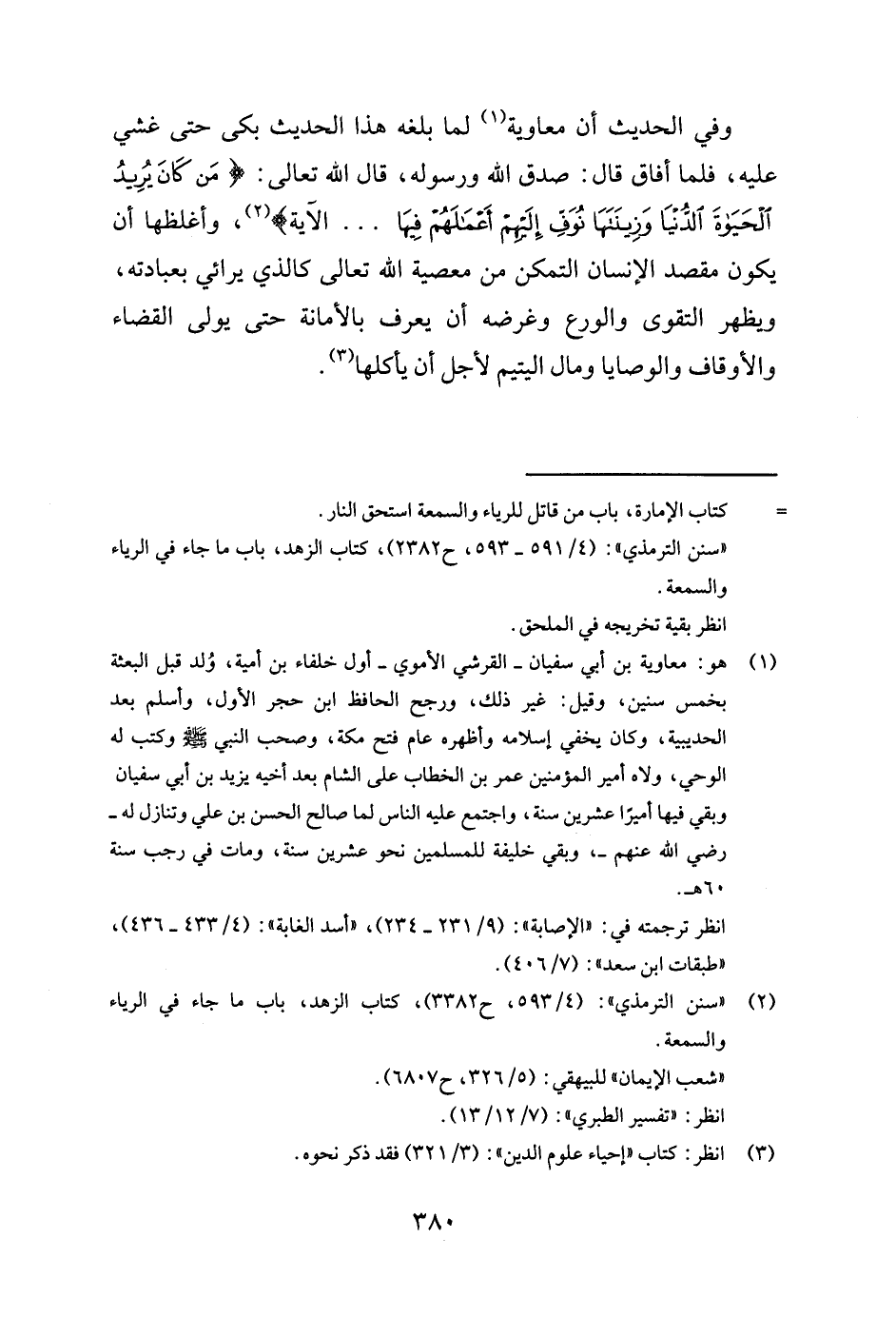 2"سنن الترمذي": (4 / 593, ح 3382) , كتاب الزهد, باب ما جاء في الرياء والسمعة."شعب الإيمان"للبيهقي: (5 / 326, ح 6807) . انظر:"تفسير الطبري": (7 / 12 / 13) .
