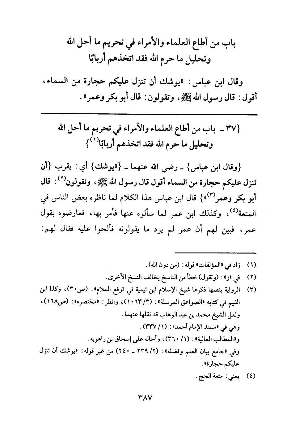 باب من أطاع العلماء والأمراء في تحريم ما أحل الله وتحليل ما حرم الله فقد اتخذهم أربابا