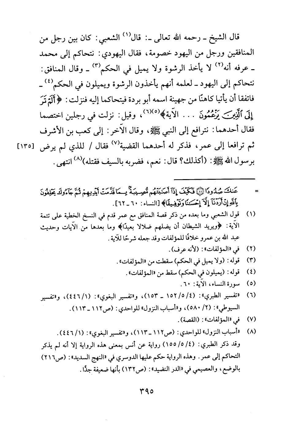 1 قول الشعبي وما بعده من ذكر قصة المنافق مع عمر قدم في النسخ الخطية على تتمة ال، الآية: ويريد الشيطان أن يضلهم ضلالا بعيدا وما بعدها من الآيات وحديث عبد الله بن عمرو خلافا للمؤلفات وقد جعله شرحا لل، الآية.
