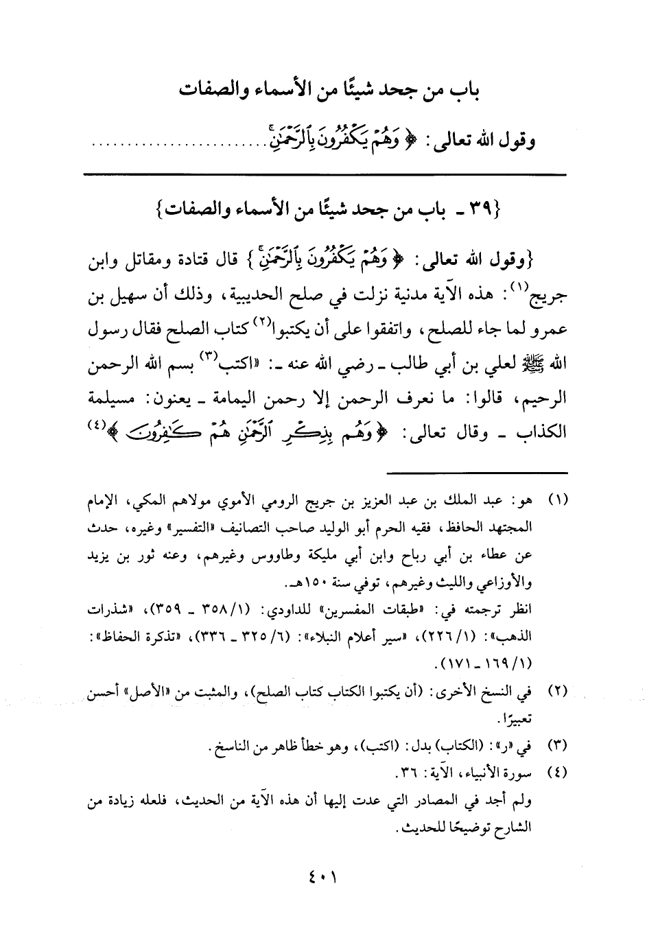 باب من جحد شيئا من الأسماء والصفات