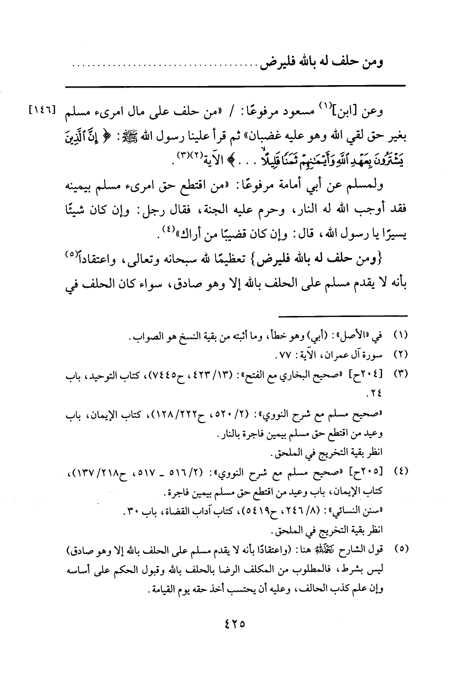 3 [204 ح] "صحيح البخاري مع الفتح": (13/ 423 , ح 7445) , كتاب التوحيد, باب 24."صحيح مسلم مع شرح النووي": (2/ 520 , ح 222/ 128) , كتاب الإيمان, باب وعيد من اقتطع حق مسلم بيمين فاجرة بالنار. انظر بقية التخريج في الملحق.