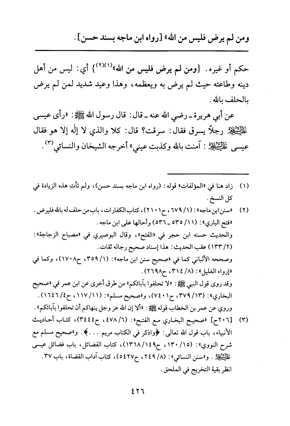 عن أبي هريرة رضي الله عنه قال: قال رسول الله صلى الله عليه وسلم " رأى عيسى عليه السلام رجلا يسرق فقال: سرقت؟ قال: كلا والذي لا إله إلا هو فقال عيسى عليه السلام: آمنت بالله وكذبت عيني " أخرجه الشيخان والنسائي3.