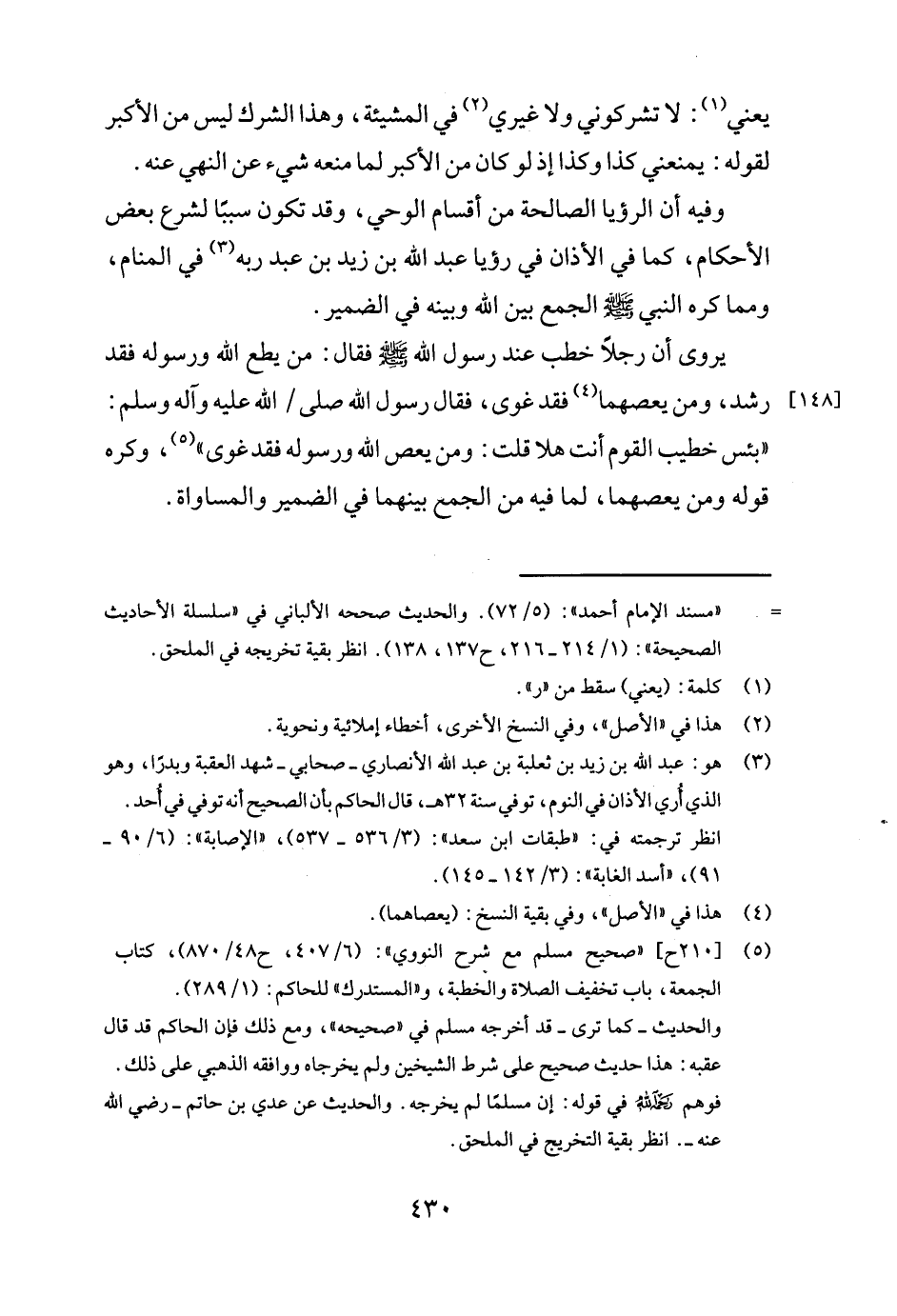يروى أن رجلا خطب عند رسول الله صلى الله عليه وسلم فقال: من يطع الله ورسوله فقد رشد، ومن يعصهما4 فقد غوى، فقال رسول الله صلى الله عليه وآله وسلم: "بئس خطيب القوم أنت هلا قلت: ومن يعص الله ورسوله فقد غوى "5 وكره قوله ومن يعصهما، لما فيه من الجمع بينهما في الضمير والمساواة.