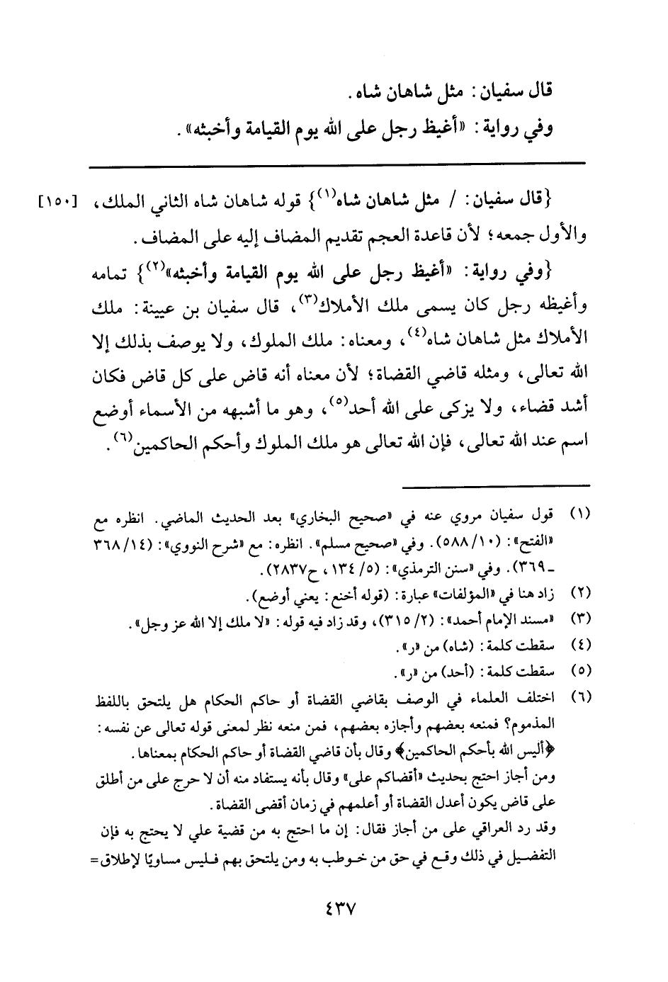 {قال سفيان: مثل شاهان شاه1} قوله شاهان شاه الثاني الملك، والأول جمعه; لأن قاعدة العجم تقديم المضاف إليه على المضاف.