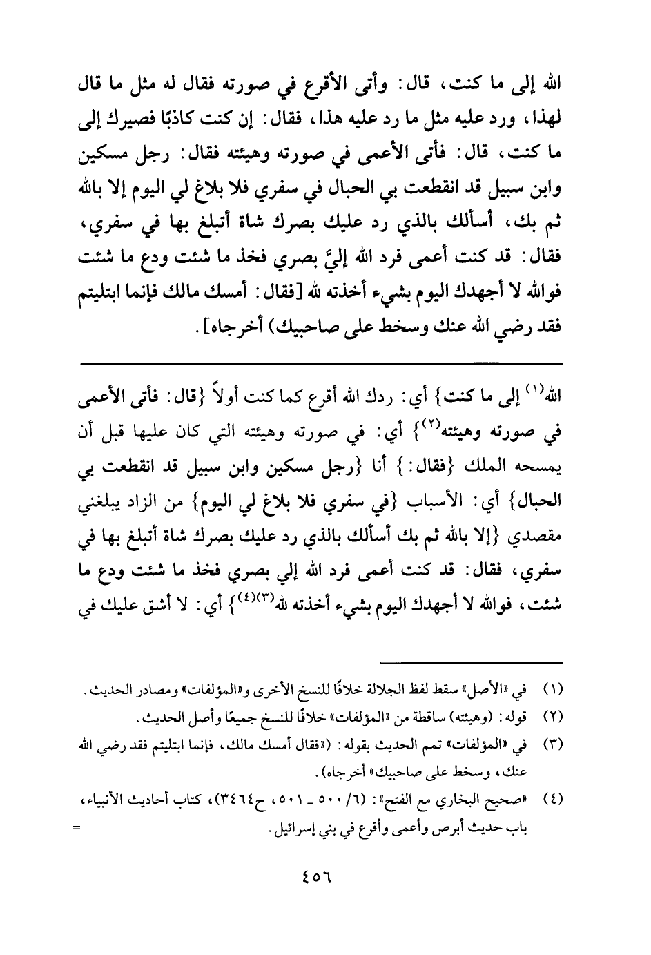 4"صحيح البخاري مع الفتح": (6/ 500- 501 , ح 3464) , كتاب أحاديث الأنبياء, باب حديث أبرص وأعمى وأقرع في بني إسرائيل. و"صحيح مسلم مع شرح النووي": (18/ 359- 310 , ح 10/ 2964) , كتاب الزهد والرقاق, المقدمة والحديث المدون لفظه."صحيح ابن حبان":"الإحسان": (1/ 565- 566 , ح 314) .