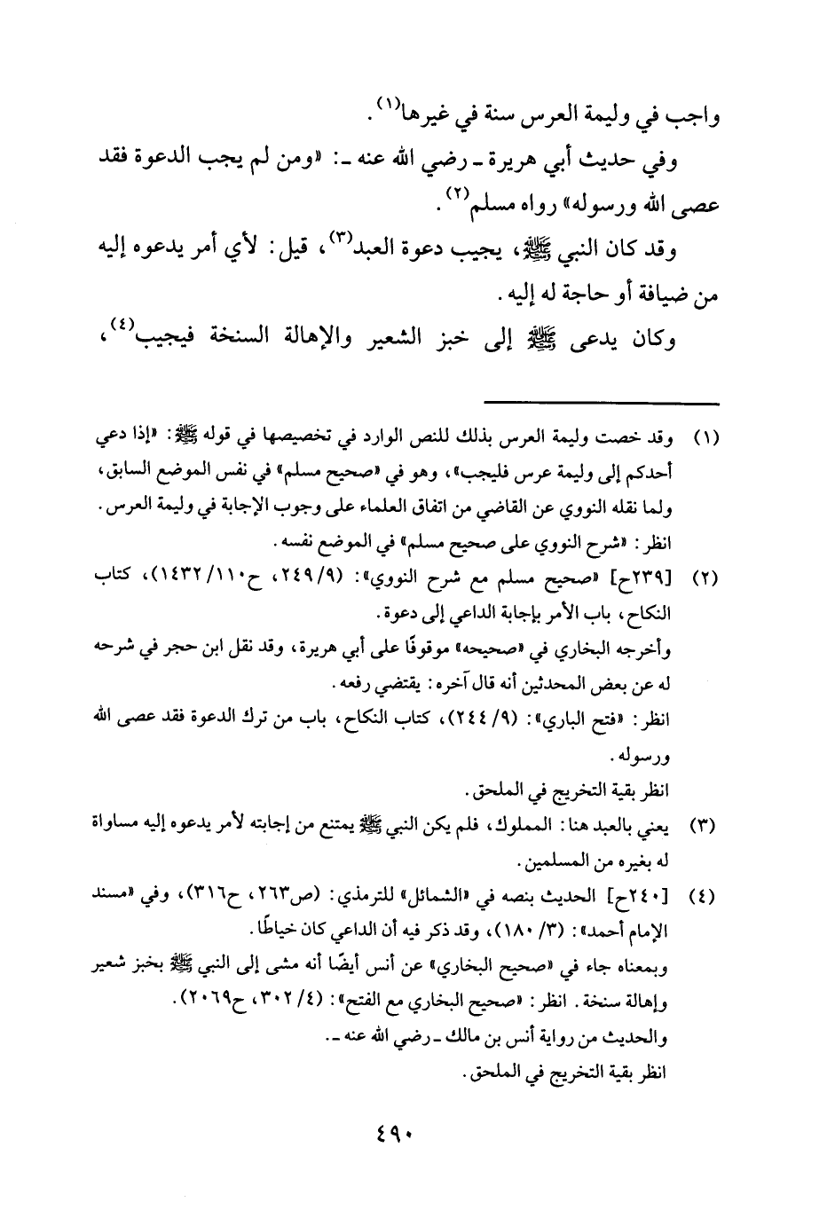 وفي حديث أبي هريرة رضي الله عنه " ومن لم يجب الدعوة فقد عصى الله ورسوله " رواه مسلم2.