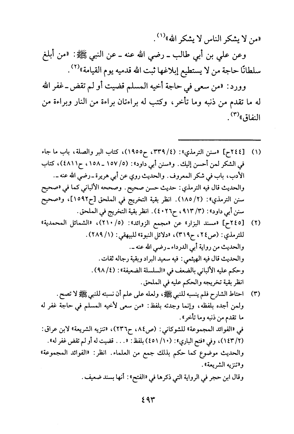 1 [244 ح] "سنن الترمذي": (4/ 339 , ح 1955) , كتاب البر والصلة, باب ما جاء في الشكر لمن أحسن إليك. و"سنن أبي داود": (5/ 157- 158 , ح 4811) , كتاب الأدب, باب في شكر المعروف. والحديث روي عن أبي هريرة -رضي الله عنه-. والحديث قال فيه الترمذي: حديث حسن صحيح. وصححه الألباني كما في"صحيح سنن الترمذي": (2/ 185) . انظر بقية التخريج في الملحق [ح 1592] , و"صحيح سنن أبي داود": (3/ 913 , ح 4026) . انظر بقية التخريج في الملحق.