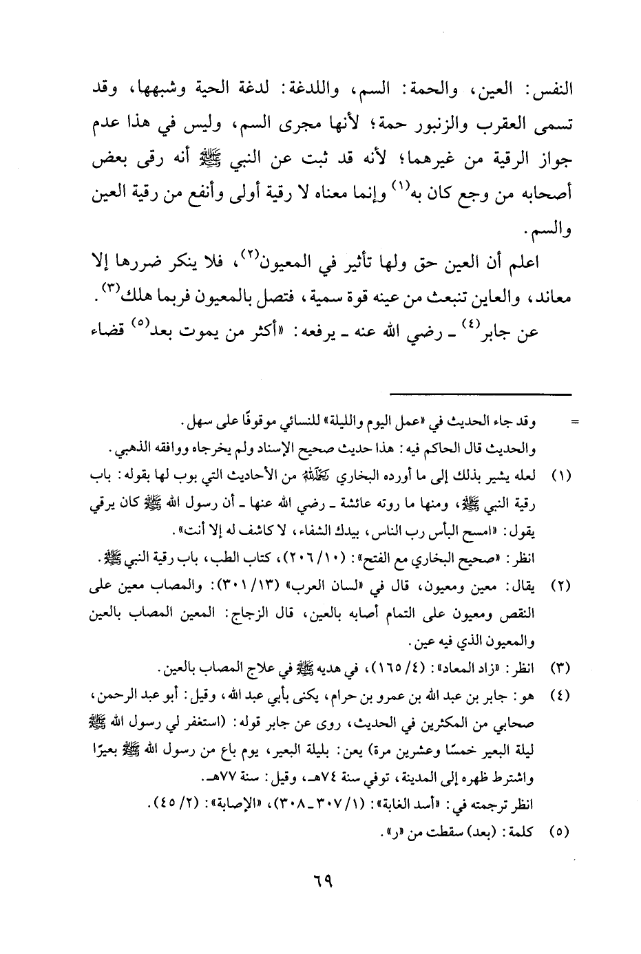 (3) انظر: ((زاد المعاد)) : (4/ 165) , في هديه صلى الله عليه وسلم في علاج المصاب بالعين.