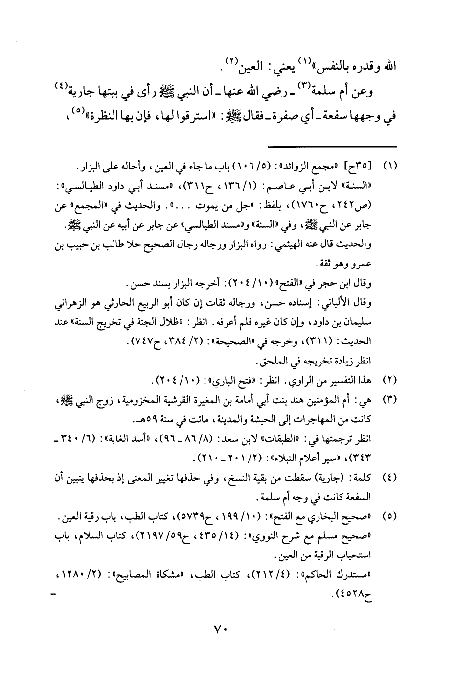 وعن أم سلمة3 -رضي الله عنها- أن النبي صلى الله عليه وسلم رأى في بيتها جارية4 في وجهها سفعة- أي صفرة- فقال صلى الله عليه وسلم " استرقوا لها، فإن بها النظرة "5،