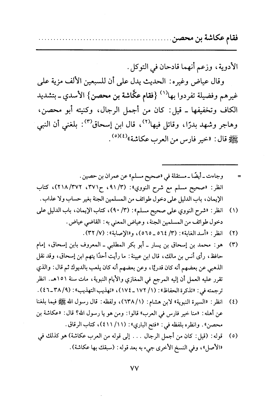 (5) قوله: (قيل: كان من أجمل الرجال. . . إلى قوله من العرب عكاشة) هو كذلك في ((الأصل)) , وفي النسخ الأخرى جيء به بعد قوله: (سبقك بها عكاشة) .