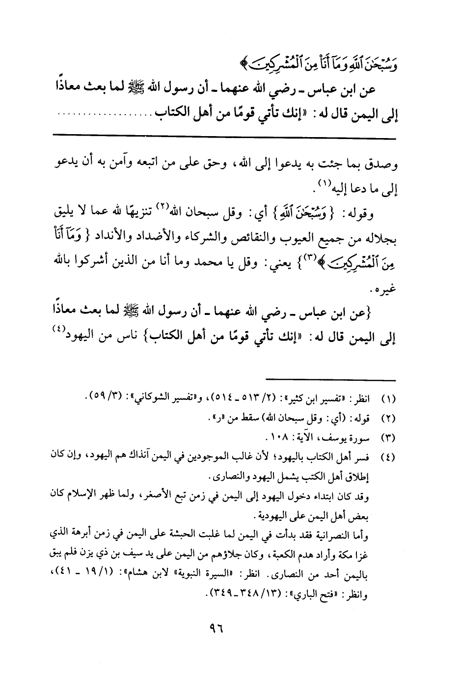 {وَسُبْحَانَ اللَّهِ وَمَا أَنَا مِنَ الْمُشْرِكِينَ} 1.