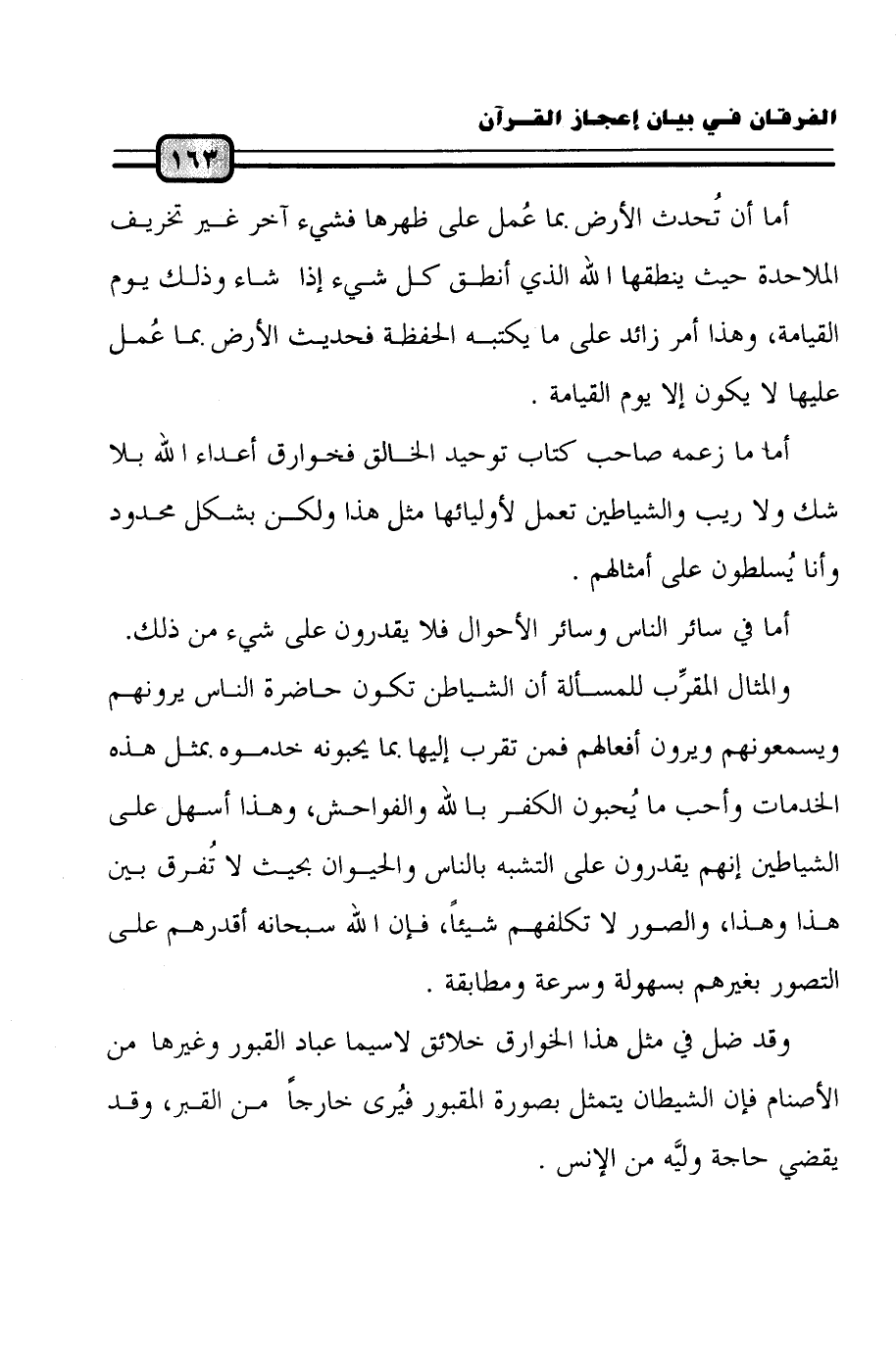 وقد ضل في مثل هذا الخوارق خلائق لا سيما عباد القبور وغيرها من الأصنام فإن الشيطان يتمثل بصورة المقبور فيُرى خارجاً من القبر، وقد يقضي حاجة وليَّه من الإنس.