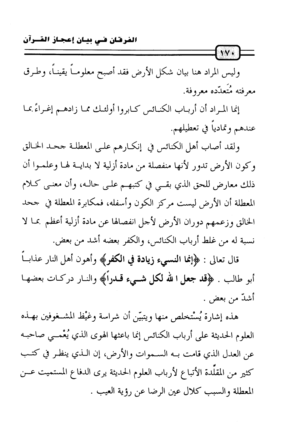 ولقد أصاب أهل الكنائس في إنكارهم على المعطلة جحد الخالق وكون الأرض تدور لأنها منفصلة من مادة أزلية لا بداية لها وعلموا أن ذلك معارض للحق الذي بقي في كتبهم على حاله، وأن معنى كلام المعطلة أن الأرض ليست مركز للكون وأسفله، فمكابرة المعطلة في جحد الخالق وزعمهم دوران الأرض لأجل انفصالها عن مادة أزلية أعظم بما لا نسبة له من غلط أرباب الكنائس، والكفر بعضه أشد من بعض.