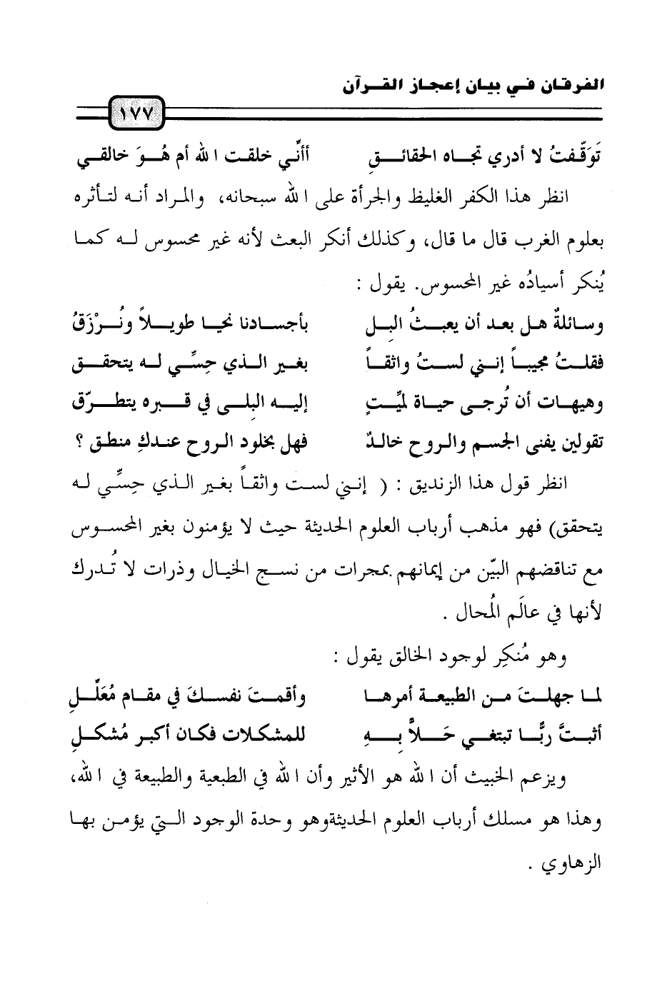 ويزعم الخبيث أن الله هو الأثير وان الله في الطبيعة والطبيعة في الله وهذا هو مسلك أرباب العلوم الحديثة وهو وحده الوجود التي يؤمن بها الزهاوي.