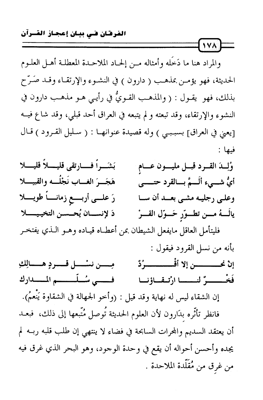 فانظر تأثّره بِدَارون لأن العلوم الحديثة تُوصل مُتّبعها إلى ذلك، فبعد أن يعتقد السديم والمجرات السابحة في فضاء لا ينتهي إن طلب قلبه ربه لم يجده وأحسن أحواله أن يقع وحده في الوجود، وهو البحر الذي غرق فيه من غرِق من مُقَلّدة الملاحدة.