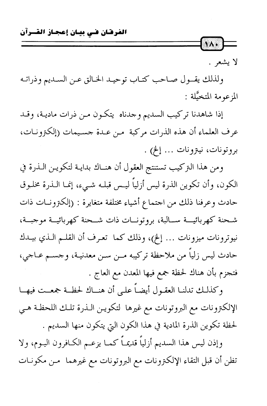 وإذن ليس هذا السديم أزلياً قديماً كما يزعم الكافرون اليوم، ولا تظن أن قبل التقاء الإلكترونات مع البروتونات مع غيرهما من مكونات