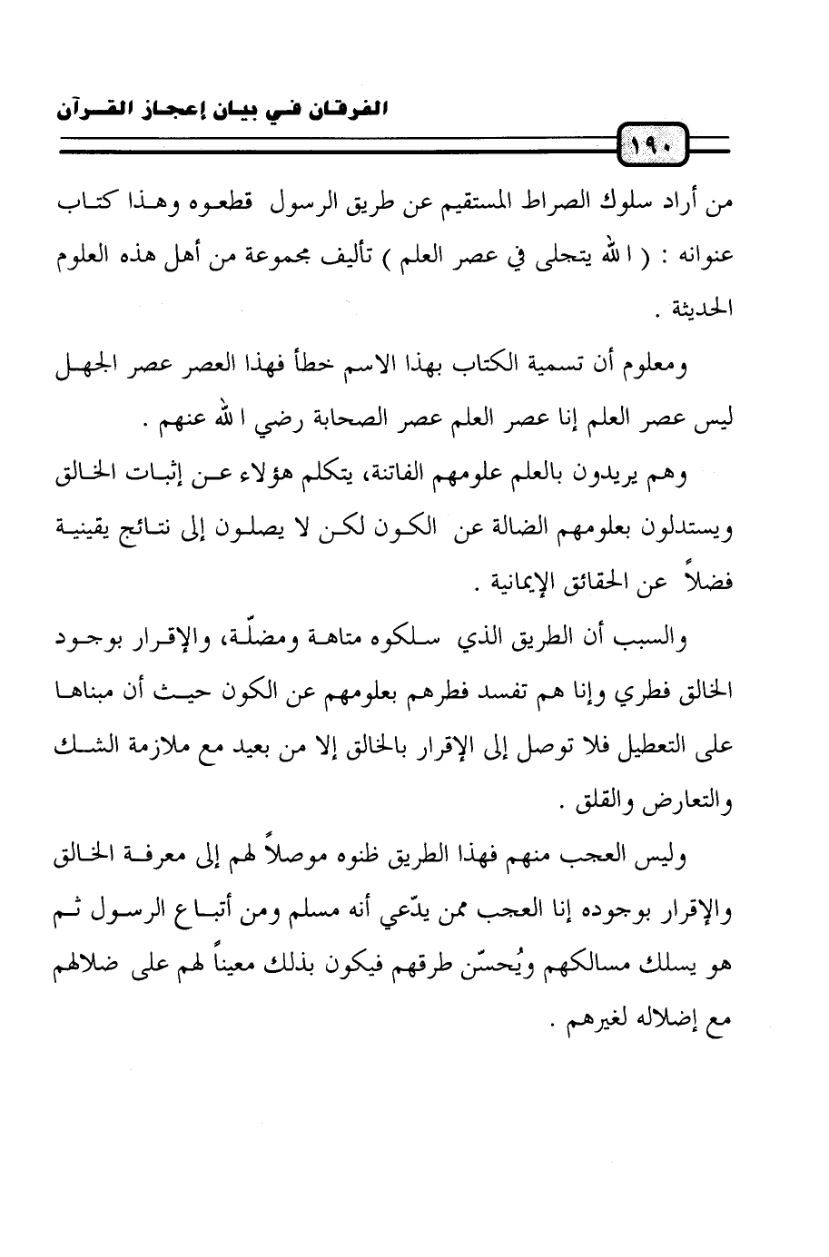 من أراد سلوك الصراط المستقيم عن طريق الرسول قطعوه وهذا كتاب عنوانه: (الله يتجلى في عصر العلم) تأليف مجموعة من أهل هذه العلوم الحديثة.