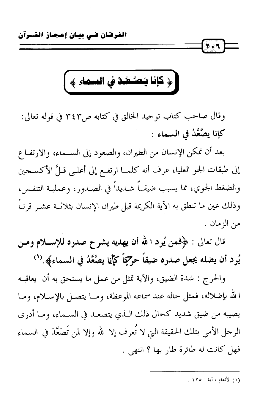 وقال صاحب كتاب توحيد الخالق في كتابه ص343 على قوله تعالى: (كَأَنَّمَا يَصَّعَّدُ فِي السَّمَاء):