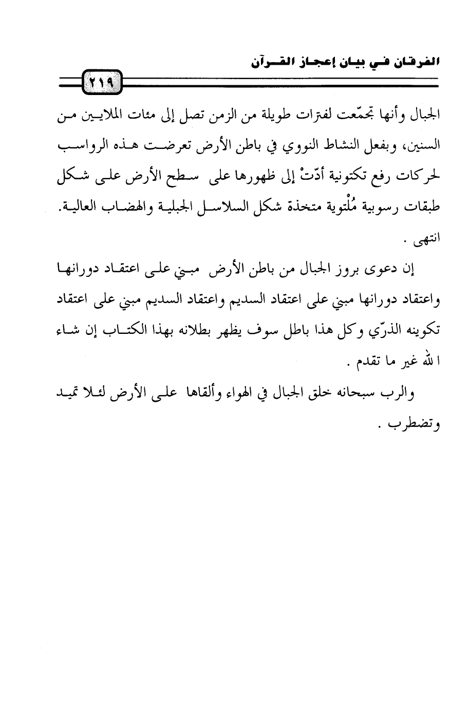 إن دعوى بروز الجبال من باطن الأرض مبني على اعتقاد دورانها واعتقاد دورانها مبني على اعتقاد السديم واعتقاد السديم مبني على اعتقاد تكوينه الذرّي وكل هذا باطل سوف يظهر بطلانه بهذا الكتاب إن شاء الله غير ما تقدم.