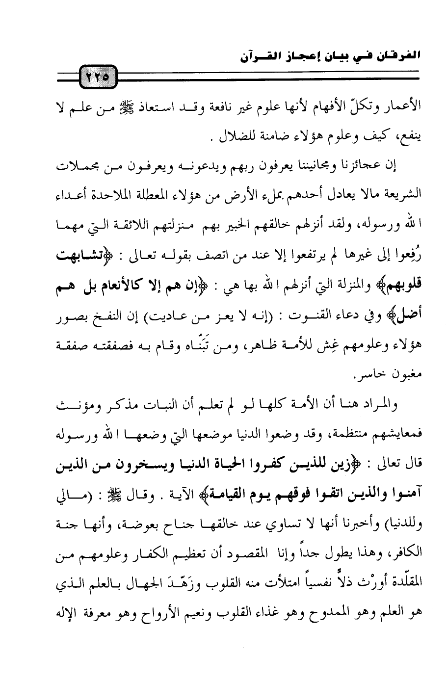 الأعمار وتكلّ الأفهام لأنها علوم غير نافعة وقد استعاذ صلى الله عليه وسلم من علم لا ينفع، كيف وعلوم هؤلاء ضامنة للضلال.