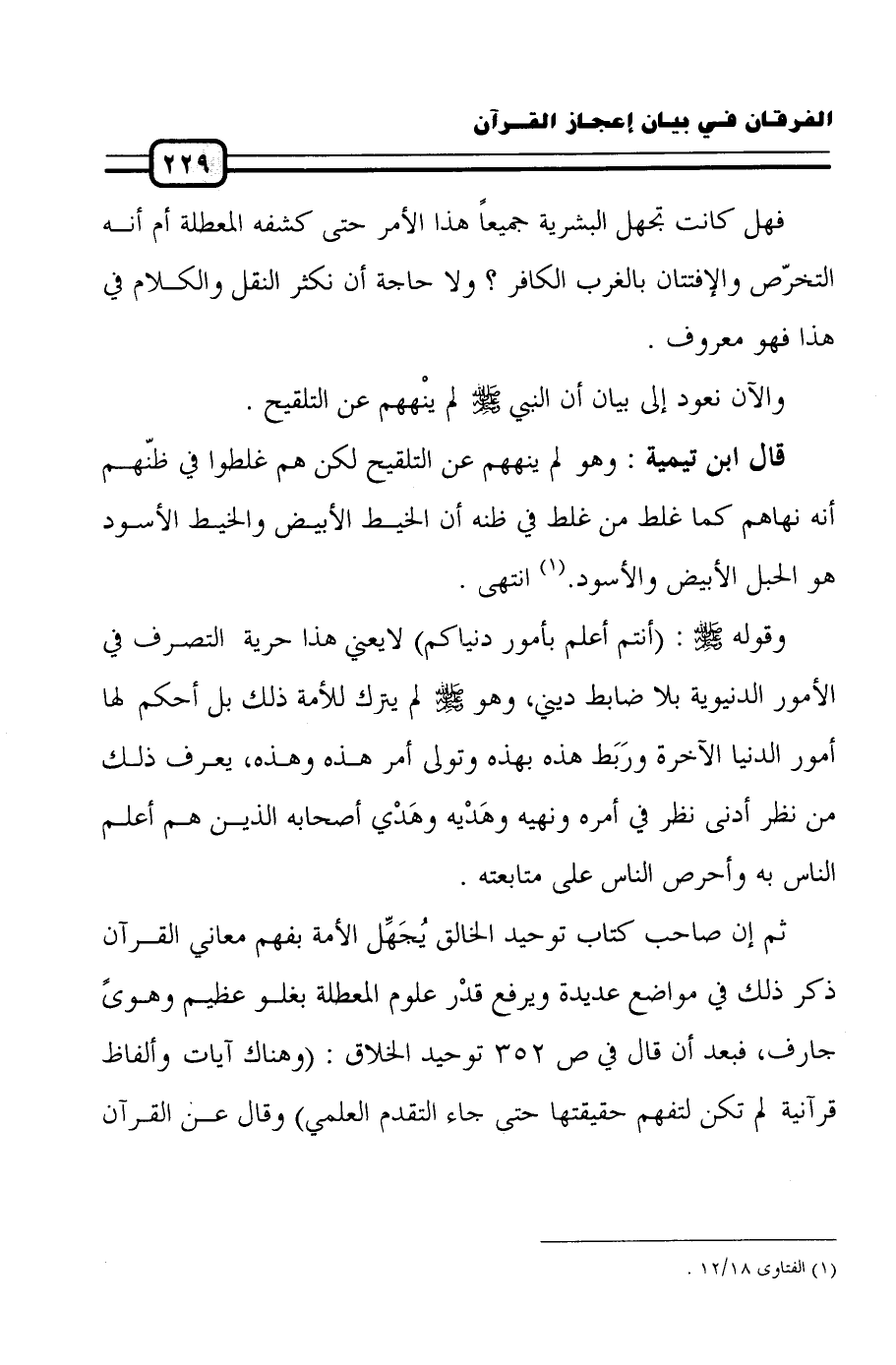 قال ابن تيمية: وهو لم ينههم عن التلقيح لكن هم غلطوا في ظنّهم أنه نهاهم كما غلط من غلط في ظنه أن الخيط الأبيض والخيط الأسود هو الحبل الأبيض والأسود. (¬1) انتهى.