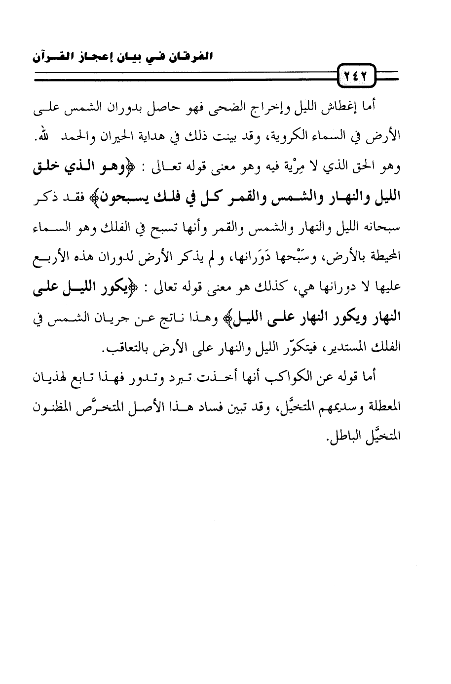 أما إغطاش الليل وإخراج الضحى فهو حاصل بدوران الشمس على الأرض في السماء الكروية، وقد بينت ذلك في هداية الحيران والحمد لله وهو الحق الذي لا مِرْية فيه وهو معنى قوله تعالى: (وَهُوَ الَّذِي خَلَقَ اللَّيْلَ وَالنَّهَارَ وَالشَّمْسَ وَالْقَمَرَ كُلٌّ فِي فَلَكٍ يَسْبَحُونَ) فقد ذكر سبحانه الليل والنهار والشمس والقمر وأنها تسبح في الفلك وهو السماء المحيطة بالأرض وسَبْحها دَوَرانها، ولم يذكر الأرض لدوران هذه الأربع عليها لا دورانها هي كذلك هو معنى قوله تعالى: (يُكَوِّرُ اللَّيْلَ عَلَى النَّهَارِ وَيُكَوِّرُ النَّهَارَ عَلَى اللَّيْلِ) وهذا ناتج عن جريان الشمس في الفلك المستدير، فيتكوّر الليل والنهار على الأرض بالتعاقب.